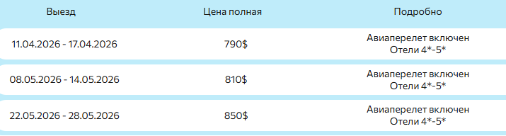 Информация о туре