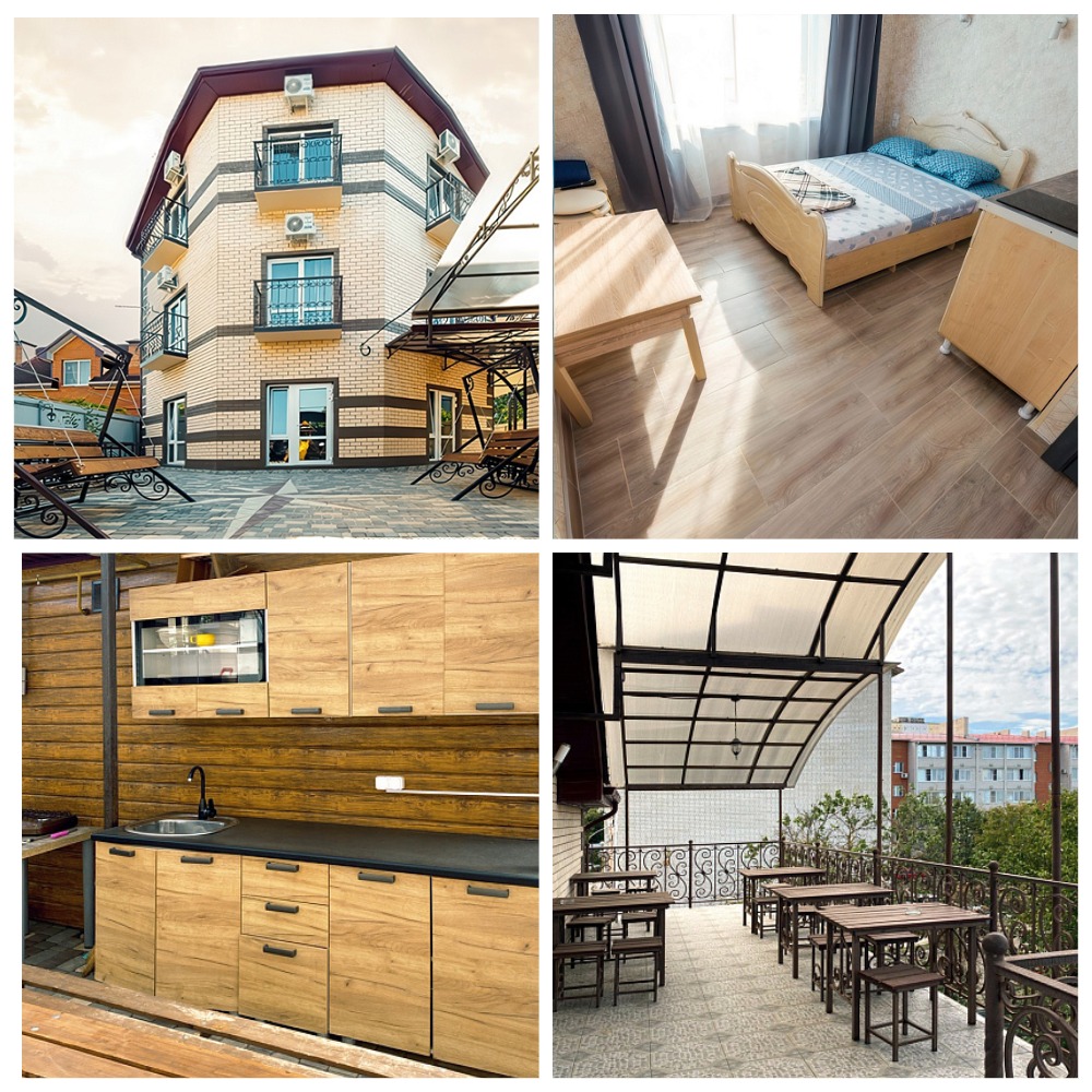Гостевой дом расположен в Ейске на ул. Седина, рядом с одной из главных достопримечательностей курорта - парком им. Поддубного со своими ухоженными аллеями с одной стороны, а с другой - Приморской набережной и пляжем Каменка. Это новый, построенный в 2020 г. туристический объект с размещением в современных, хорошо оснащенных номерах. На территории расположены зоны отдыха с беседками и столовой мебелью, качели, детская площадка, мини-кухня на открытом воздухе, уютная оборудованная зона барбекю. На территории - бесплатный Wi-Fi.