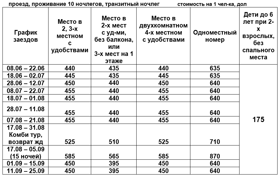 | 03.06.2026 г. комби | 05.06-15.06 | 17.06.2026 г. | 325 | 345 | 320 | 325 | 320 | 430 |
