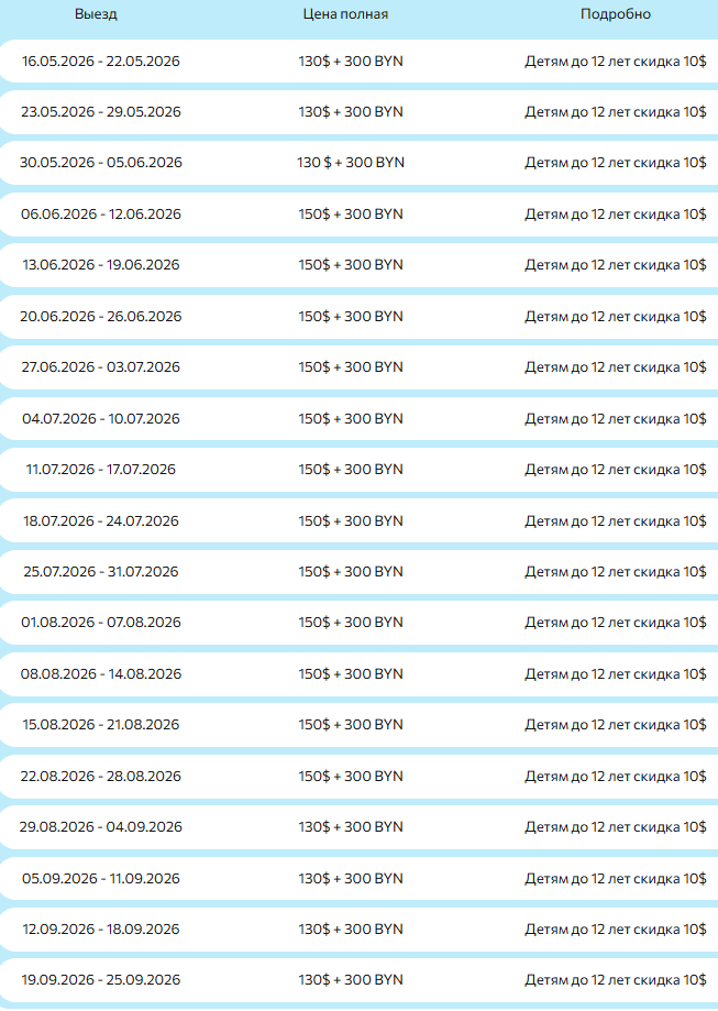 16.05, 23.05, 30.05, 06.06, 13.06, 27.06, 04.07, 11.07, 18.07, 25.07, 01.08, 08.08, 15.08, 22.08, 29.08, 05.09, 12.09, 19.09.2026 Г.Длительность: