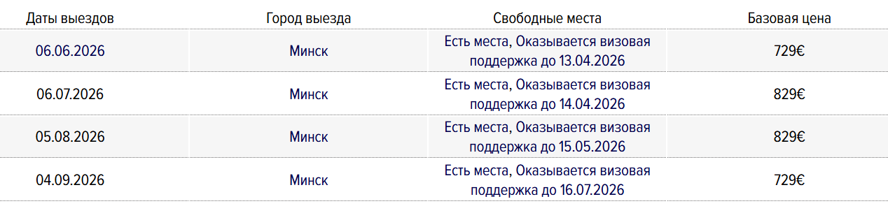 - для поездки в данный тур необходимо наличие Шенгенской визы