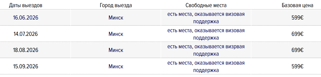 - точное время отправление тура уточняйте у менеджеров за 1-2 дня до тура