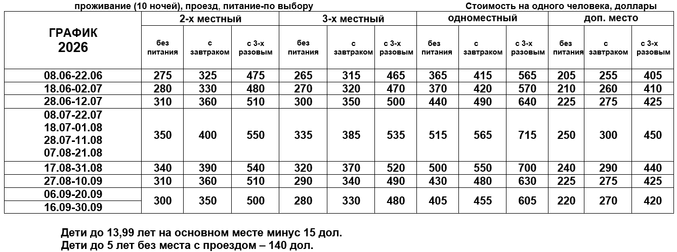 15 дней тур (10 ночей проживания)Стоимость: