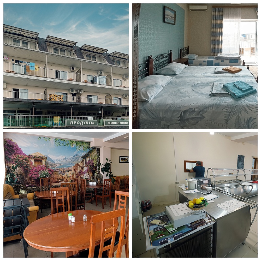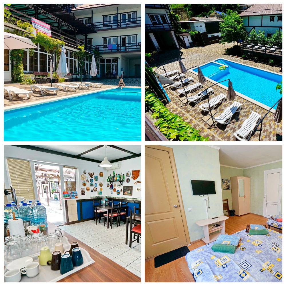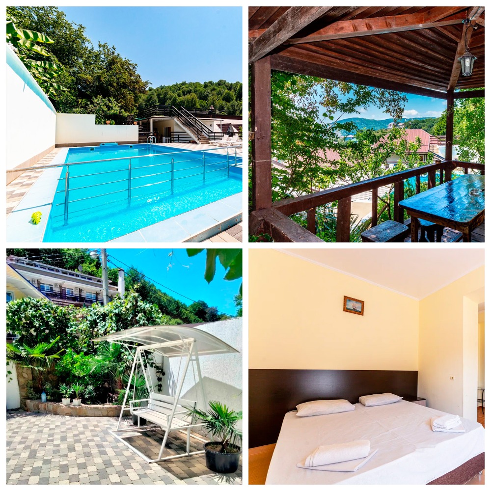 Отель "Виноград" расположен в Лермонтово в 10 минутах ходьбы до моря, до аквапарка 7 минут. Большой бассейн. Детская площадка. Столовая и кухня для самостоятельного приготовления. Цена акционная, раннее бронирование до 30.03.2025 г.
