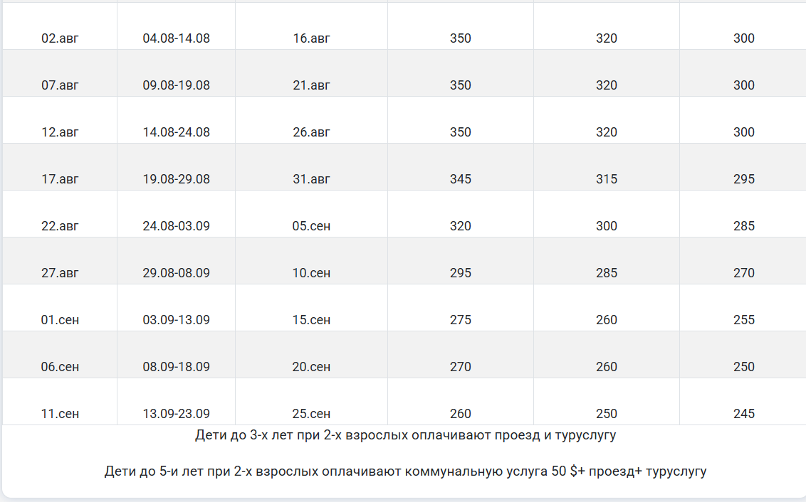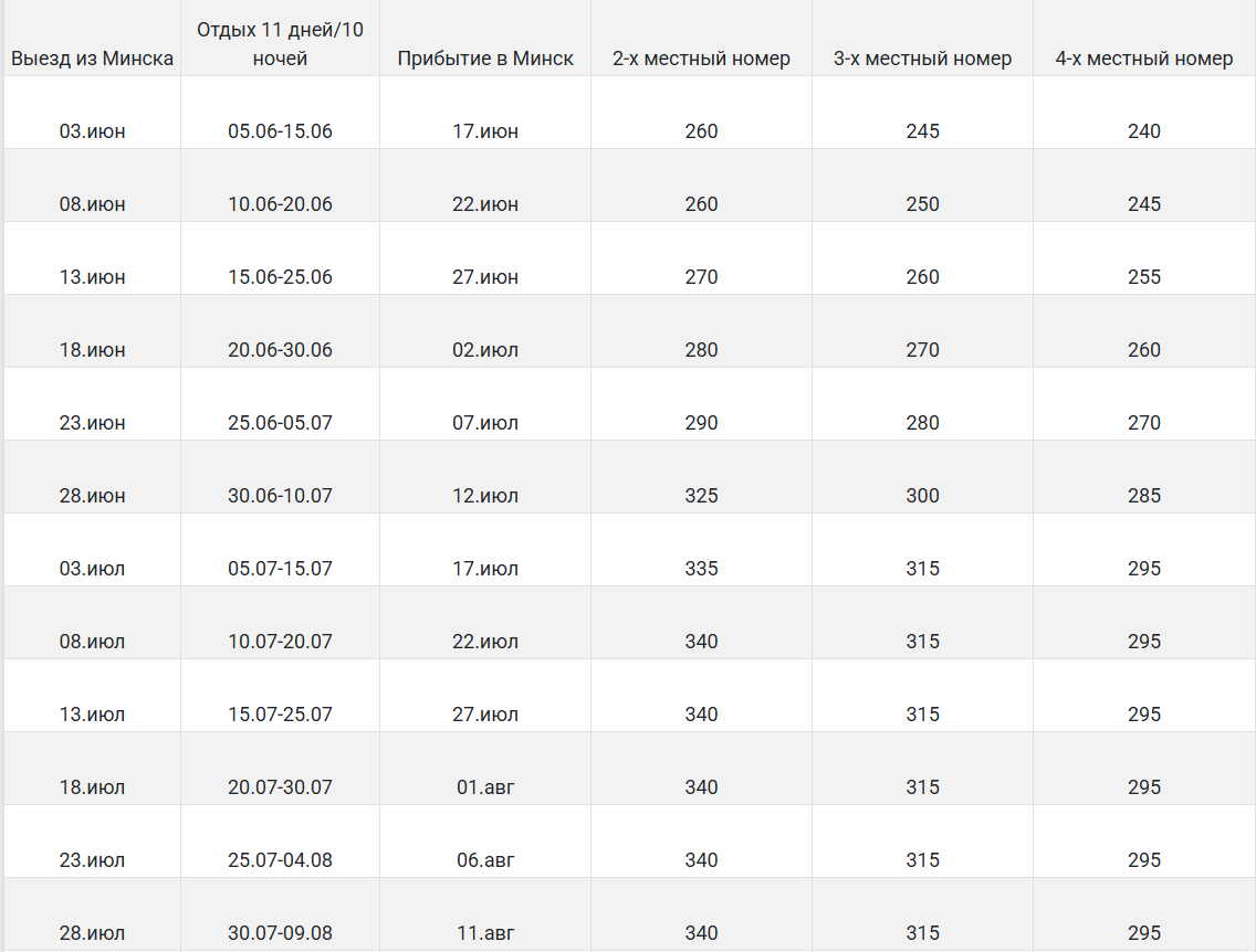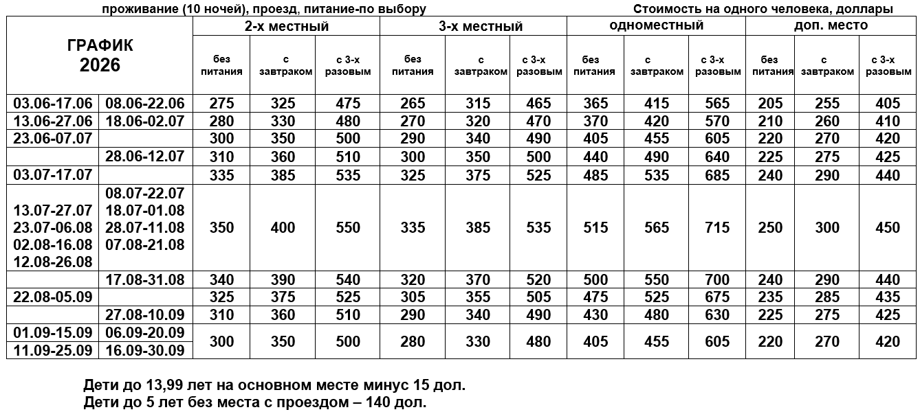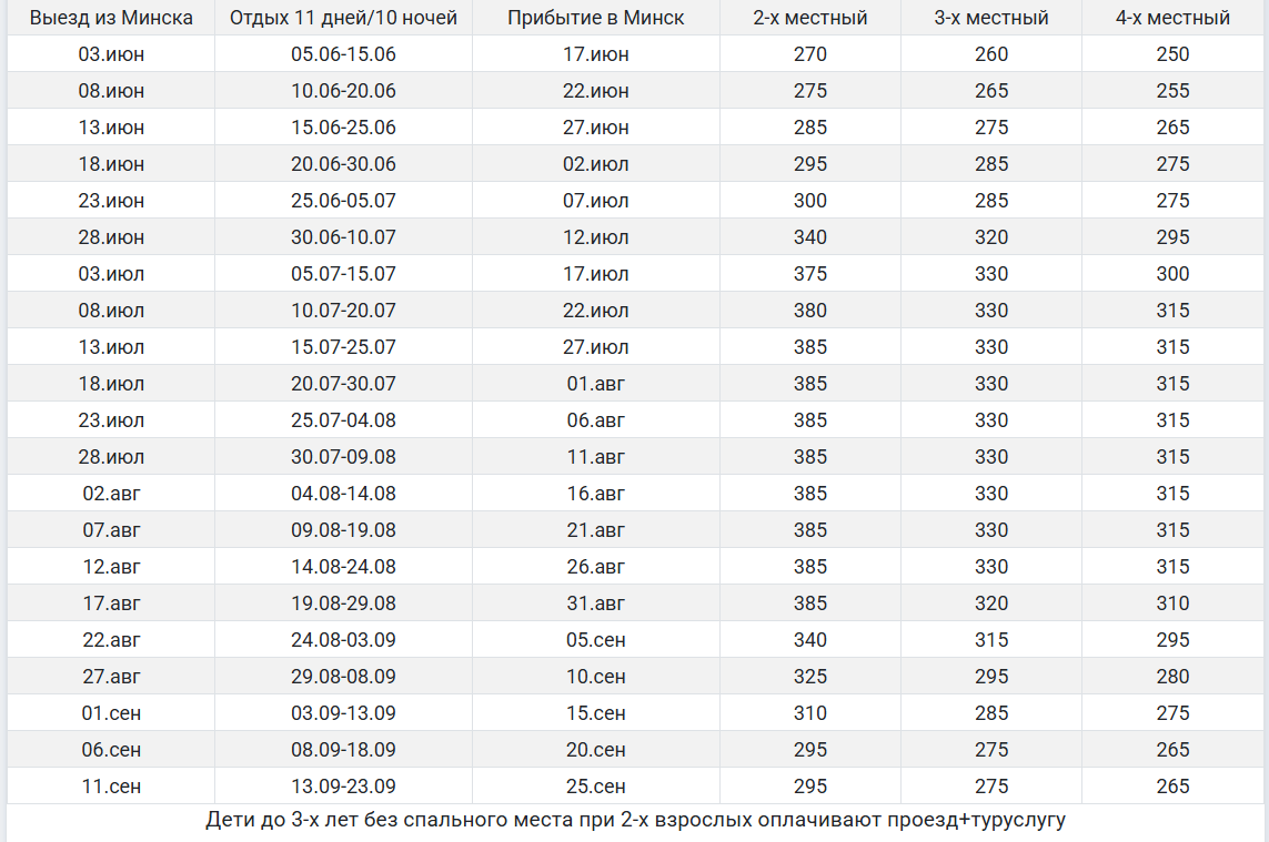 - комплекс туристических услуг: 150 BYN для взрослых, 90 BYN дет. до 11,99 лет (ИЮНЬ), 190 BYN для взрослых, 120 BYN дет. до 11,99 лет (ИЮЛЬ, АВГУСТ, СЕНТЯБРЬ)