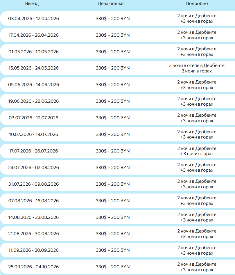 - выбор места в автобусе 20 BYN / с чел. (по желанию)