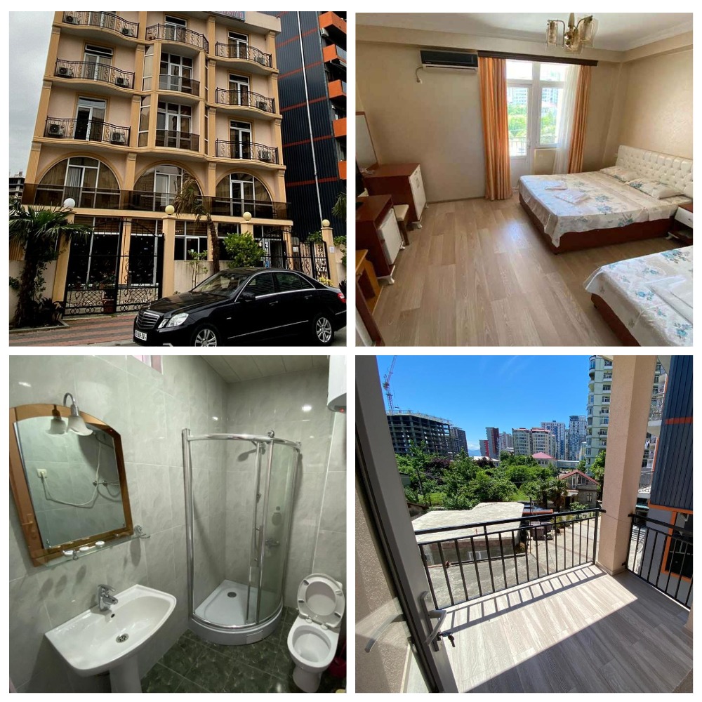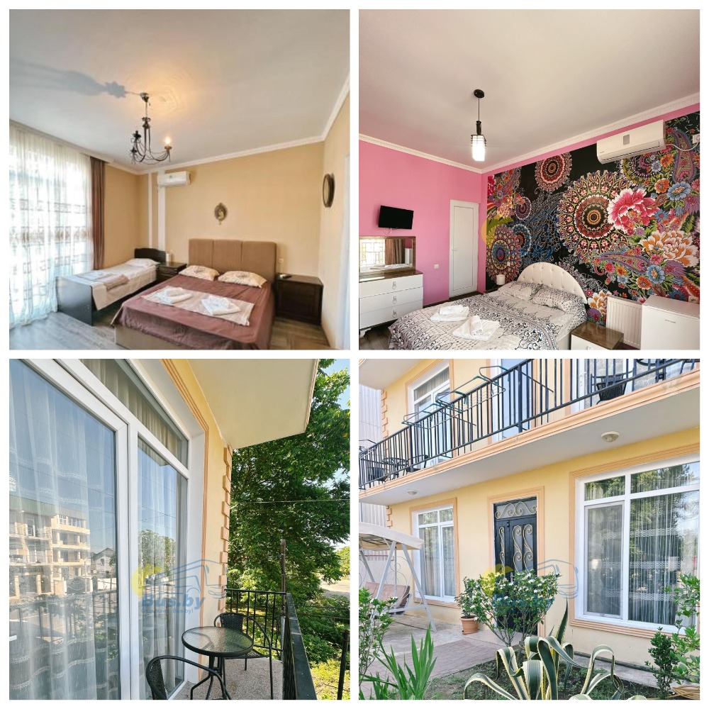 Гостевой дом расположен в 3 минутах ходьбы от пляжа, в центре Кобулети. В распоряжении туристов уютных двор, бар, беседки и большой бассейн с шезлонгами, и полностью оборудованная кухня для тех, кто хочет готовить самостоятельно. Каждый номер оборудован кондиционером, телевизором, холодильником и собственной ванной комнатой, кровать совместная или раздельные.