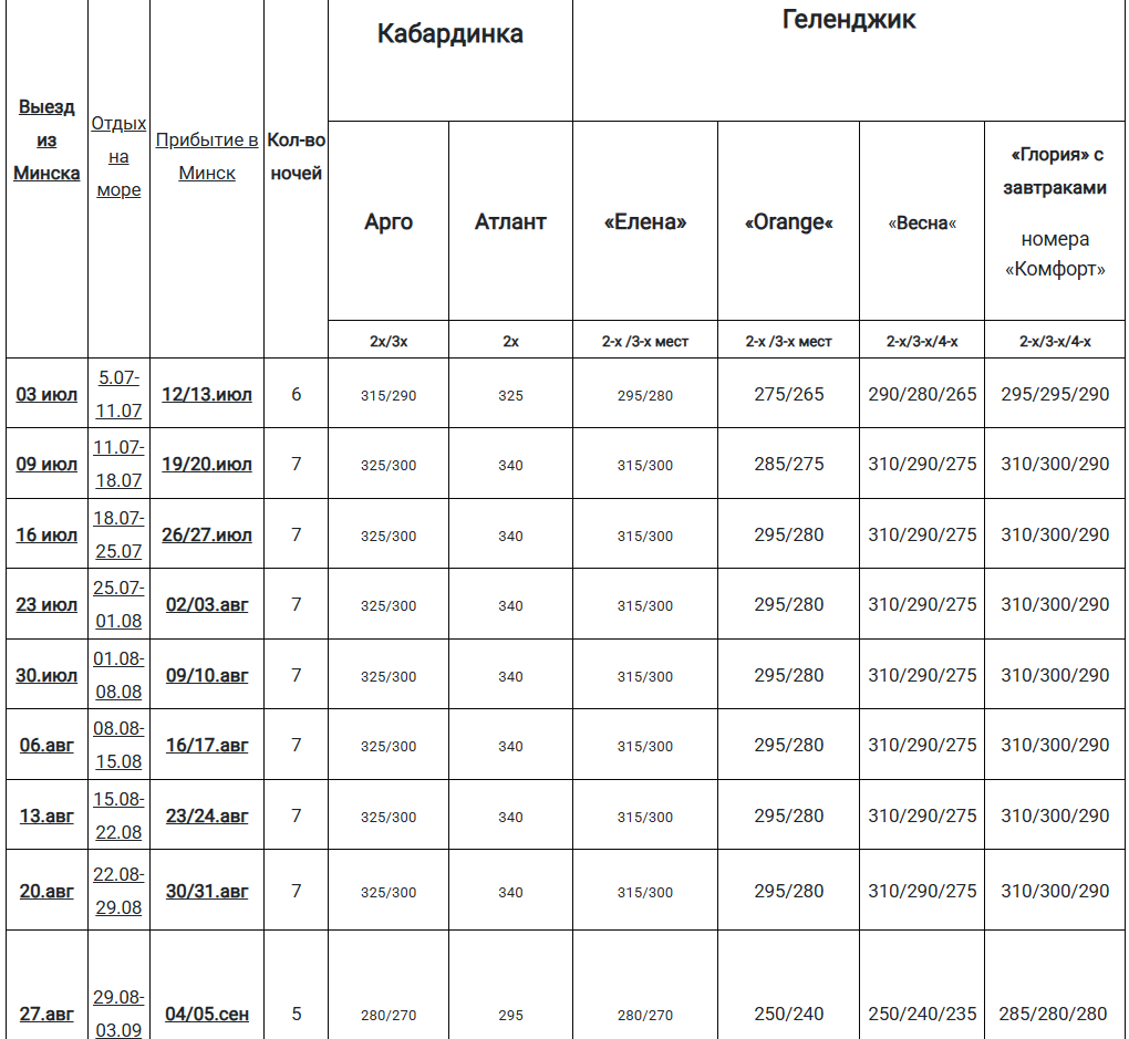 - туруслуга 150 BYN для взр., 100 BYN для детей до 12 лет