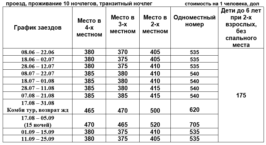 15 дней тур (10 ночей проживания)Стоимость: