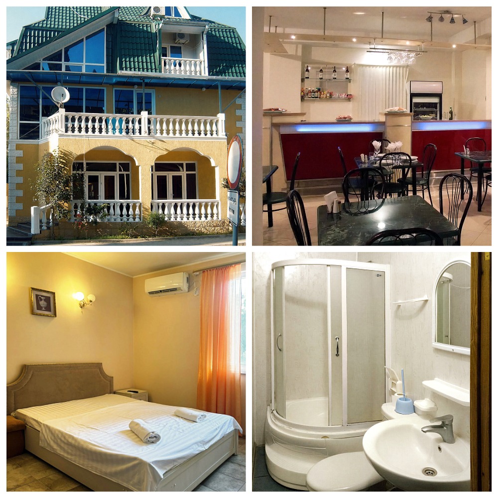 На первом этаже отеля есть кафе, за доп. плату можно заказать завтраки или ужины. Номера 2х, 3х местные с удобствами. Одноместный номер с удобствами на три комнаты. Есть 4х местный двухкомнатный номер с удобствами. В номере - набор стандартной мебели, туалет, умывальник, душ, кондиционер, телевизор, холодильник, выход на общую террасу или свой балкон. В некоторых номерах возможно дополнительное место для детей до 12 лет.