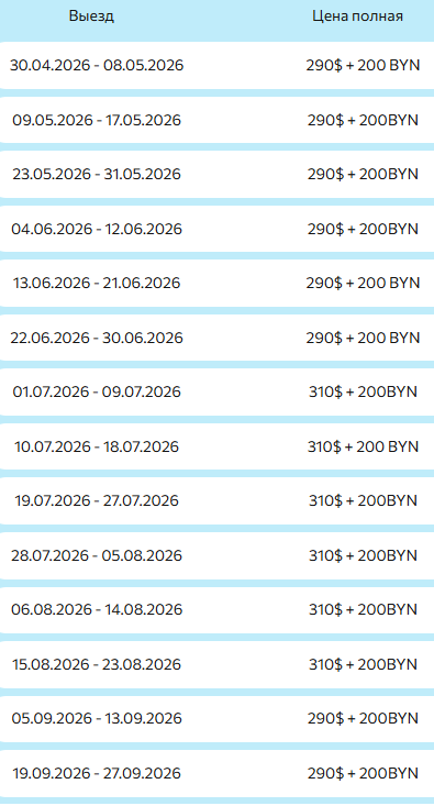 30.04, 09.05, 23.05, 04.06, 13.06, 22.06, 01.07, 10.07, 19.07, 19.07, 28.07, 06.08, 15.08, 05.09, 19.09.2026 г.Длительность: