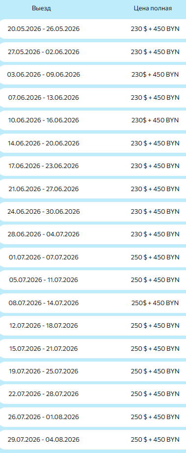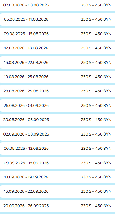 20.05, 27.05, 03.06, 07.06, 10.06, 14.06, 17.06, 21.06, 24.06, 28.06, 01.07, 05.07, 08.07, 12.07, 15.07, 19.07, 22.07, 26.07, 29.07, 02.08, 05.08. 09.08, 12.08, 16.08, 19.08, 23.08, 26.08, 30.08, 02.09, 06.09, 09.09, 13.09, 16.09, 20.09.2026 г.Длительность: